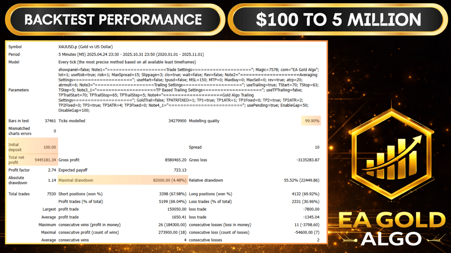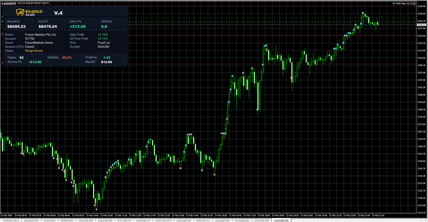 Fully Automated Execution: Hands-free trading with fast reaction speed for volatile XAUUSD conditions.