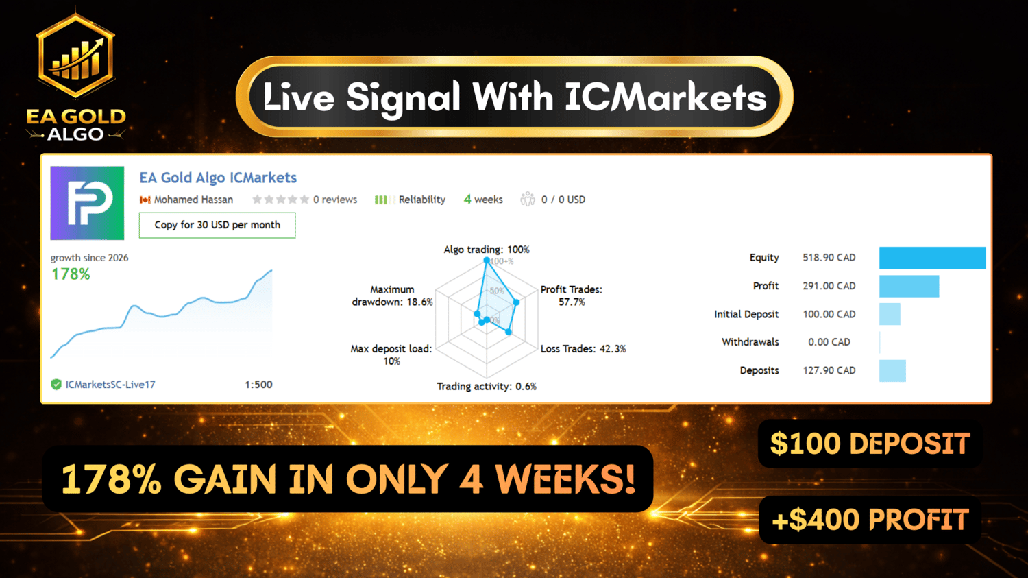 EA Gold Algo MT4 is a professional Expert Advisor (EA) focused on liquidity breakout trading, specifically designed for trading Gold (XAUUSD). Designed to capitalize on rapid and strong price surges, the EA focuses on precise order execution, strict risk control, and extremely fast response times in highly volatile market conditions.