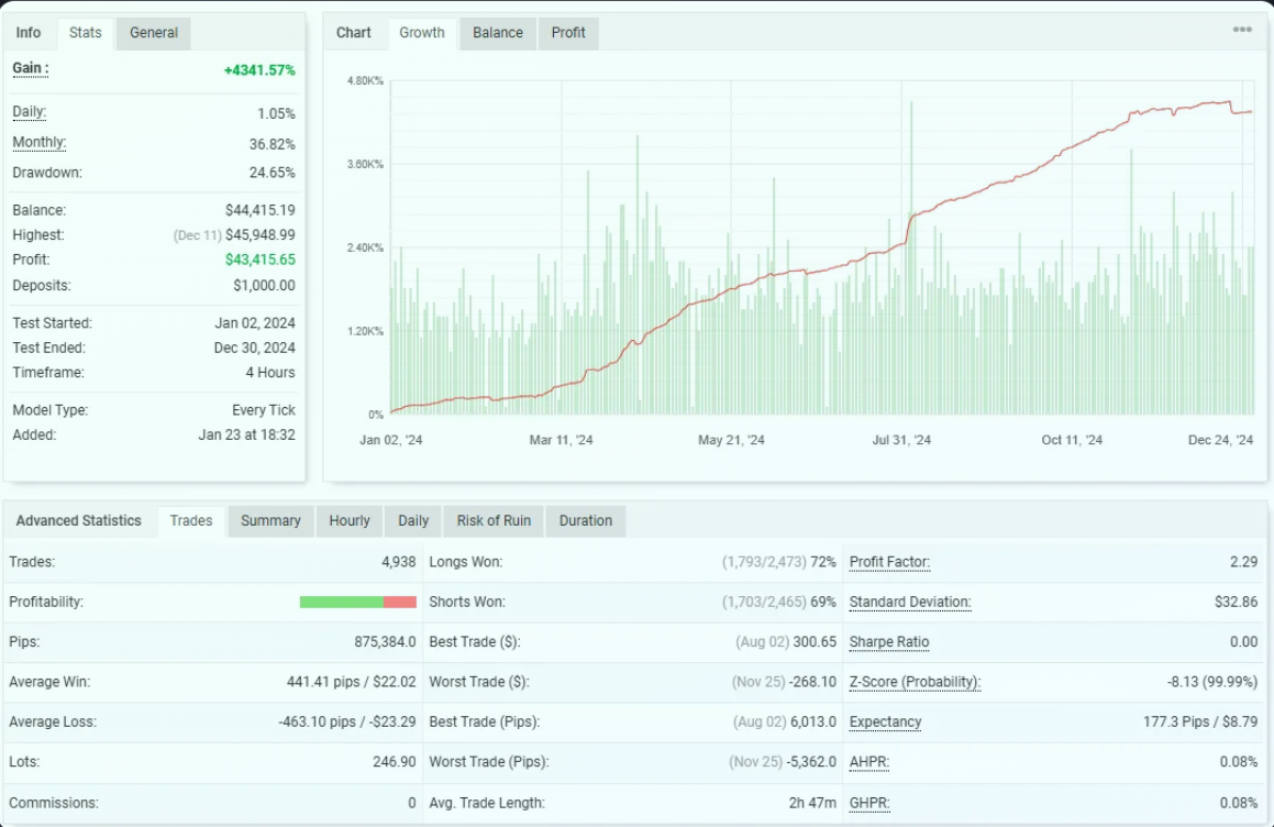 - Scalping logic: The EA operates on lower timeframes, using institutional-style logic to target small, frequent gains while maintaining account stability.