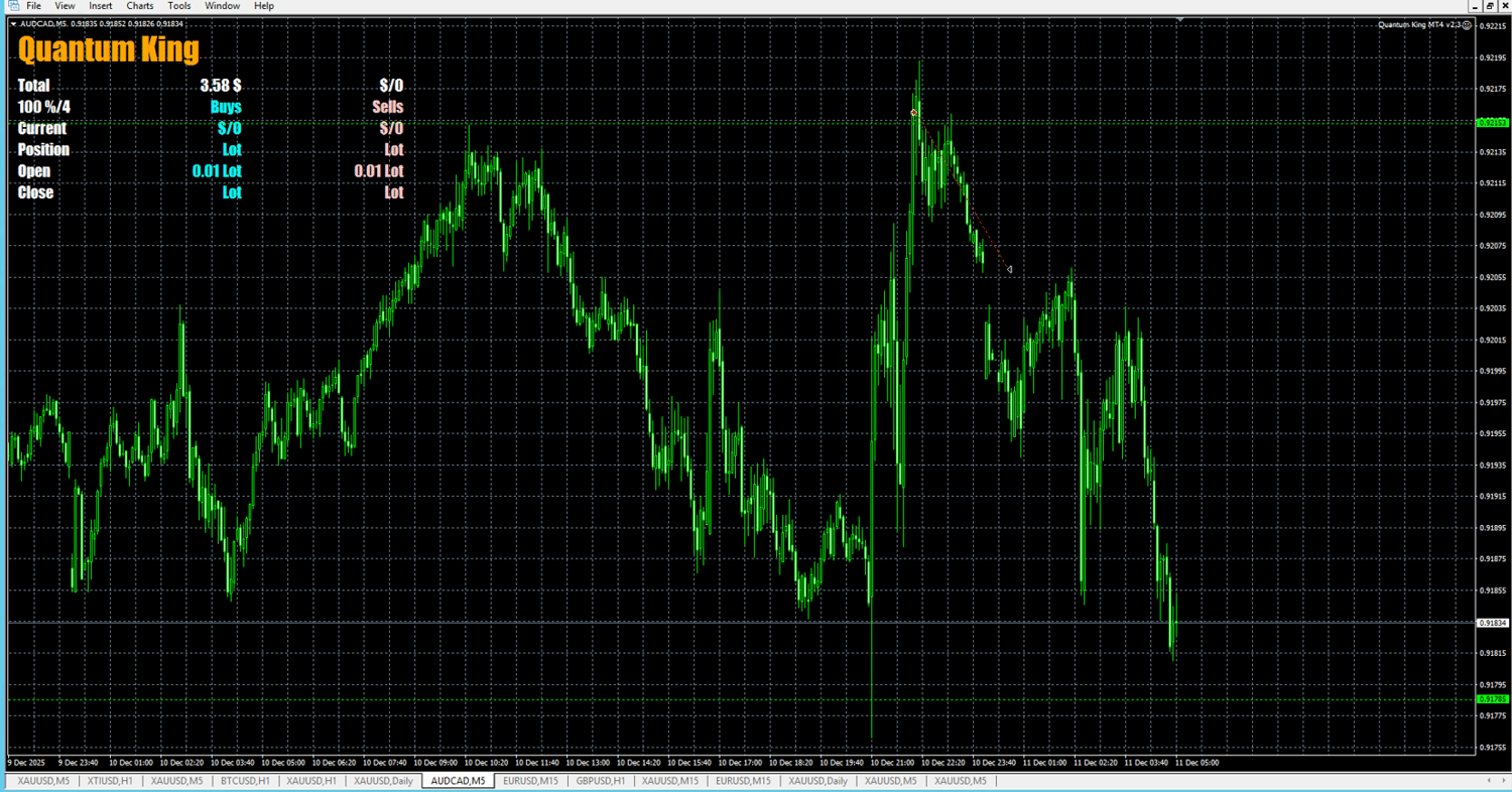 Quantum King EA is a fully automated trading system developed for the AUDCAD pair on the M5 timeframe.